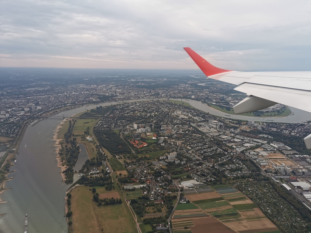 Kurze Schleife über den Rhein und Neuss und dann ab nach Süd-Ost nach Hause. Also für das Flugzeug. Für uns in den Kurzurlaub.