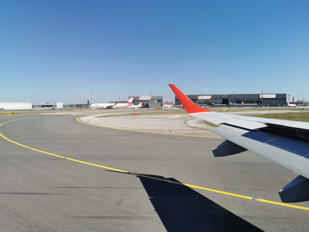 Und dann Touchdown. Auch hier stehen sehr viele Flugzeuge geparkt rum, denn auch Austrian hat mit Beginn der Pandemie den Flugbetrieb eingestellt und fährt den Betrieb gerade langsam wieder hoch.