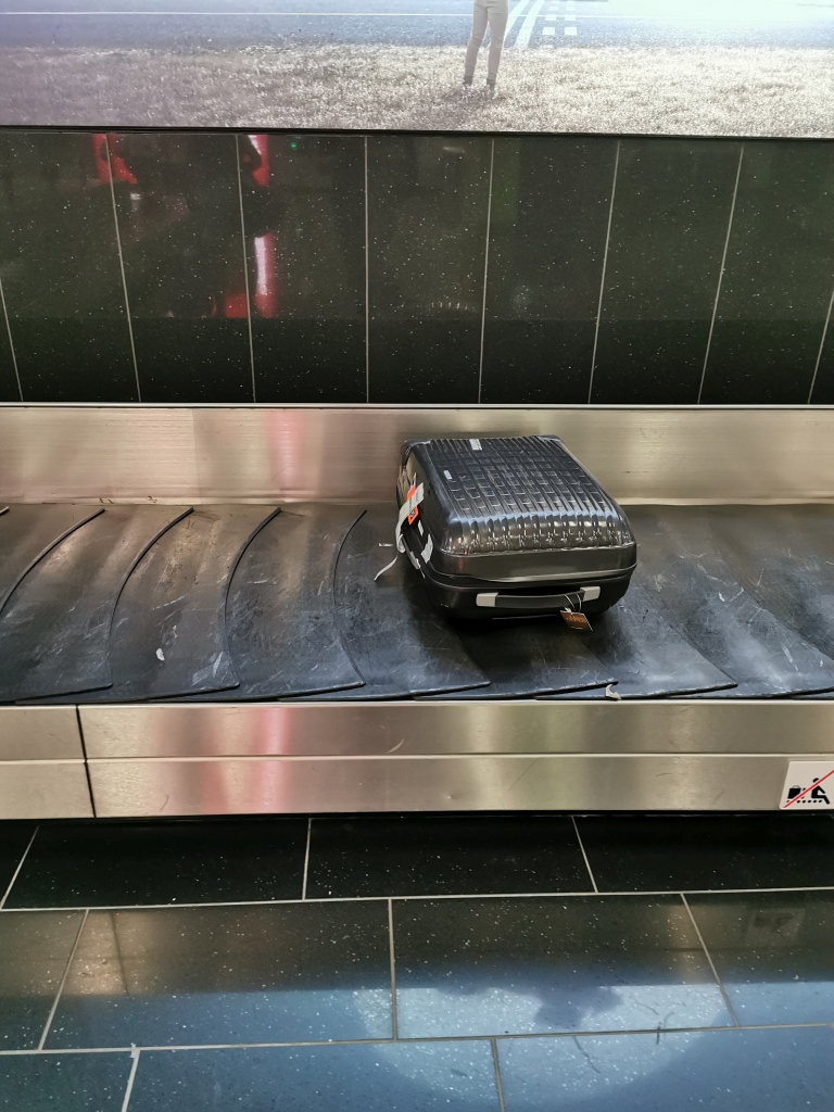 Aber gut. Dafür kreiselte, als wir zum Gepäckband kamen, auch schon unser Koffer einsam seine Runden.
