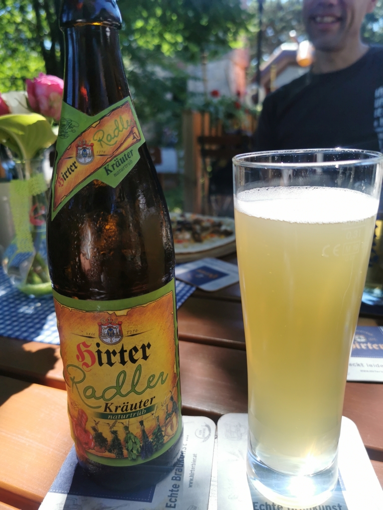 Angeblich konnte man von einem Aussichtsturm einen noch besseren Ausblick erhalten und daher haben wir einen Scout (Markus) da hochgeschickt. Seine Berichte konnte uns allerdings eher nicht davon überzeugen, dass es den Aufwand wert ist – also suchten wir uns einen freien Platz im Biergarten des Schutzhauses am Harzberg und besorgten uns etwas zu trinken.