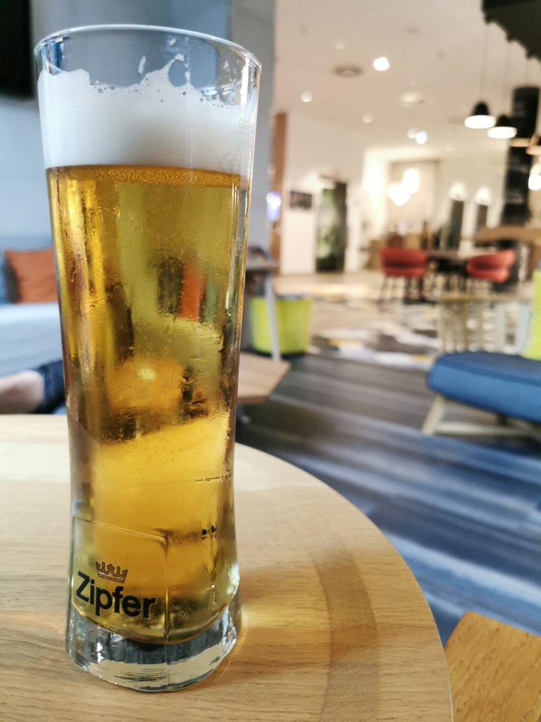 Nachdem unsere Suche von Erfolg gekrönt war, belohnten wir uns mit einem Gratis-Bier (wegen Status bei Accorhotels) an der Hotelbar. Wo wir die einzigen waren.