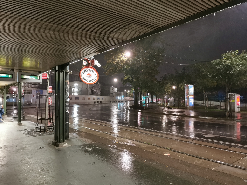 Nach dem Essen haben wir uns dann relativ schnell von Markus verabschiedet, einerseits wegen dem Regen, andererseits weil gerade eine Tram ankam. Was, im Nachhinein ist man ja immer schlauer, Blödsinn war, denn wir mussten beim Umsteigen 15 Minuten auf die nächste D warten. Glücklicherweise mit einem Dach über dem Kopf.