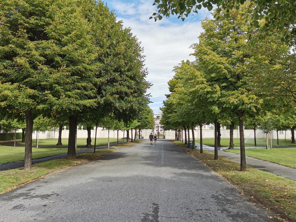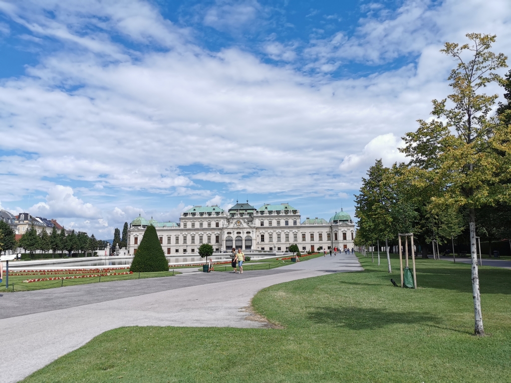 Vorher hatten wir zwar etwas Zeit aber eben doch nicht so viel, haben wir uns ein kleines Frühstück gegönnt und sind, auch wegen es relativ warmen Wetters in den Park vom Schloss Belvedere gegangen, um dort unter den Bäumen was zu sitzen.