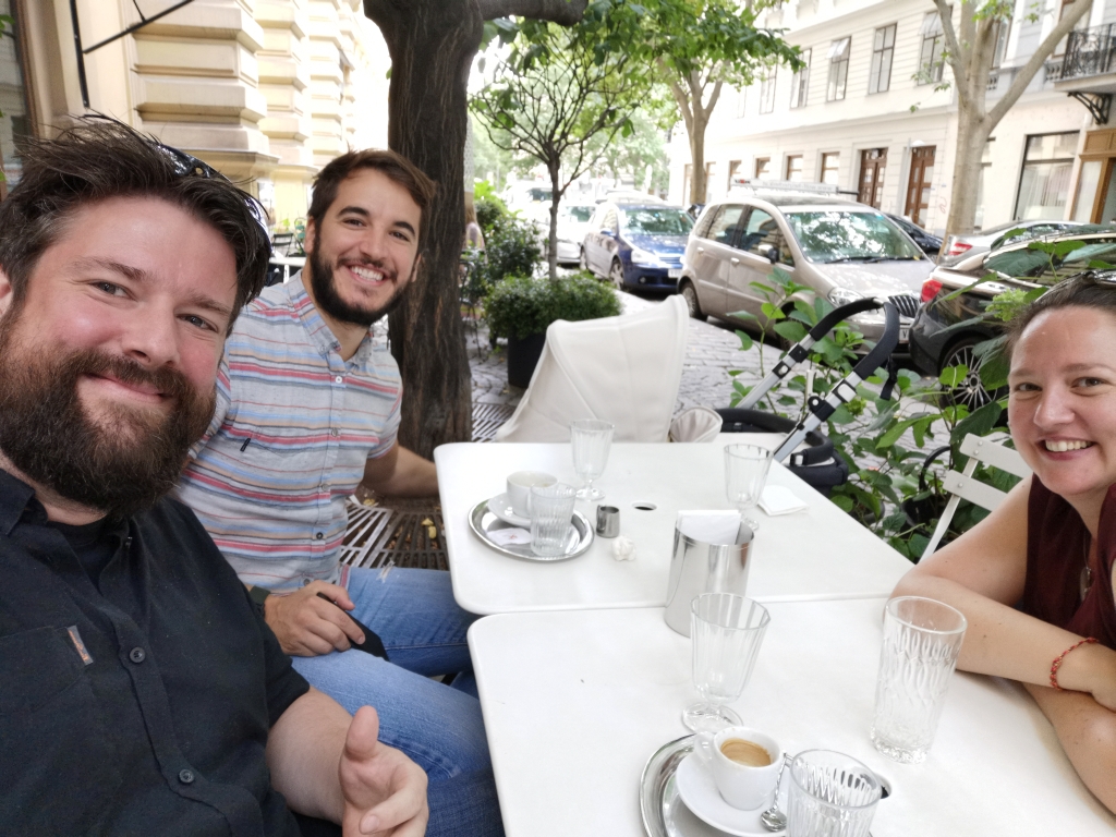 Spontan hat es sich ergeben, dass wir uns noch mit weiteren Freunden treffen konnten: Carini und Andrija. Andrija hat ein paar Jahre als Externe bei uns gearbeitet und wir haben uns immer mal wieder getroffen. Und beide sind vor 3 Wochen Eltern geworden, also hat es uns um so mehr gefreut, dass das Treffen zum Mittagessen spontan geklappt hat.