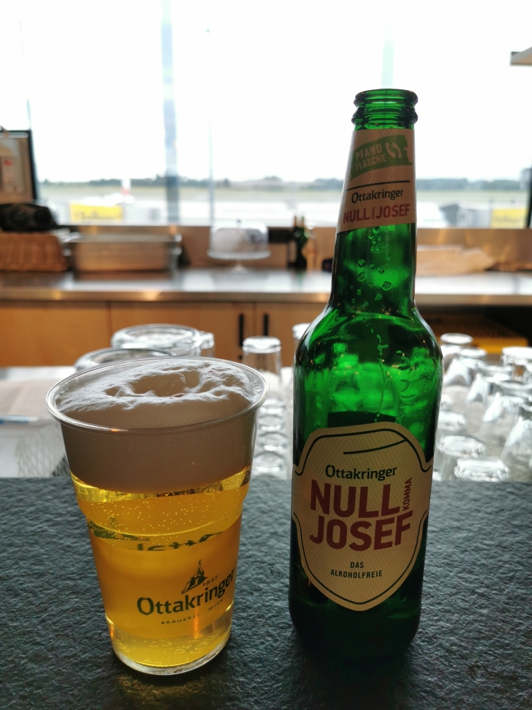 Einziger Unterschied zu Düsseldorf: In Wien hat tatsächlich noch keine Lounge auf. Damit hatten wir nicht gerechnet und so mussten wir uns 2 Stunden selber unterhalten. Angesichts der Autofahrt von Düsseldorf nach Hause kam Alkohol nicht in Frage, also wurden die alkoholfreien Varianten in der kleinen Bar (eine der wenigen, die auf hatte) ausprobiert.