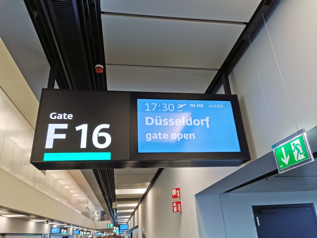 Dabei verging die Zeit auch. An dem Gate wurde nämlich ein Ryanair Flug abgefertigt und wir wurden sowohl durch die Fluggäste als auch die Behandlung derselben durch das Personal darin bestätigt, diese LowCostCarrier tunlichst zu vermeiden. Letztendlich kommt es natürlich immer auf dem Preis an und was man dafür erwartet, aber so herumgeschubst zu werden – da zahlen wir lieber ein paar Euro mehr.