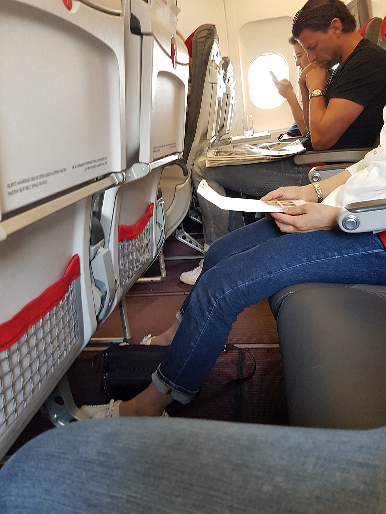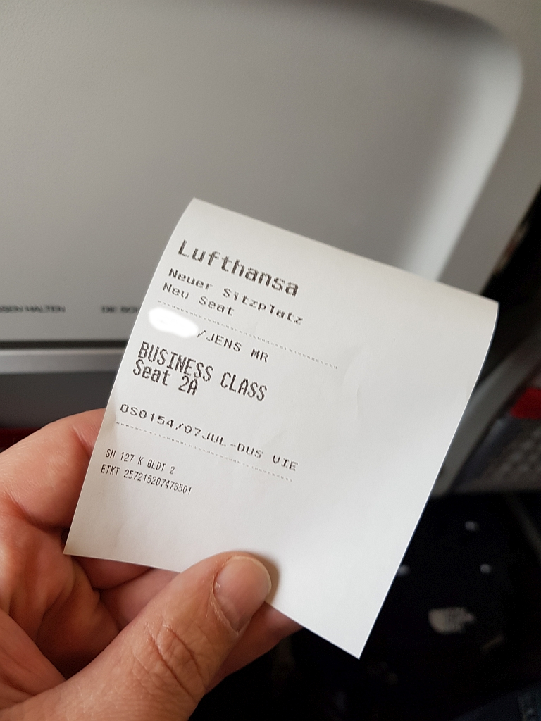 Upgrade? Das kam überraschend und für uns zu schnell. Meike hatte einen Mittelplatz, Jens einen Fensterplatz. Warum Jens nach vorne gegangen ist und Meike zwischen 2 fremden Menschen platziert blieb, erschien uns jetzt nicht so besonders logisch. Vielleicht hatte dies mit den Meilen von Jens zu tun, vielleicht war es Zufall – keine Ahnung. Auf die Idee, dass Meike nach vorne geht, ist der Gentlemen Jens auch erst gekommen, als der Flieger schon halb da war.