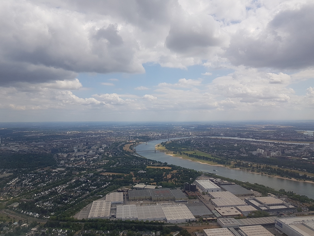 Naja, es ging auf jeden Fall normal auf die Startbahn und in westlicher Richtung über den Rhein.
