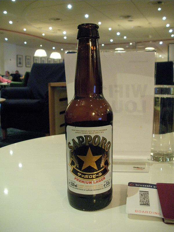 Aber die haben hier in der Lounge „Sapporo“-Bier! Mein Lieblings-Japan-Bier!