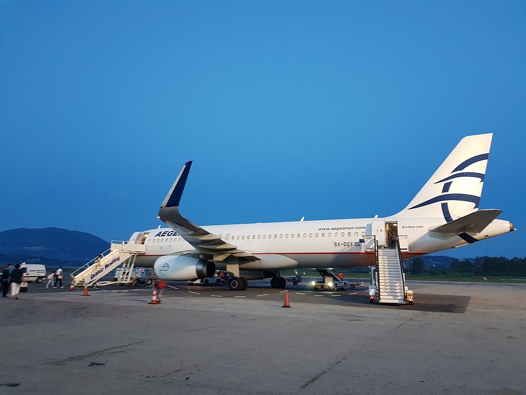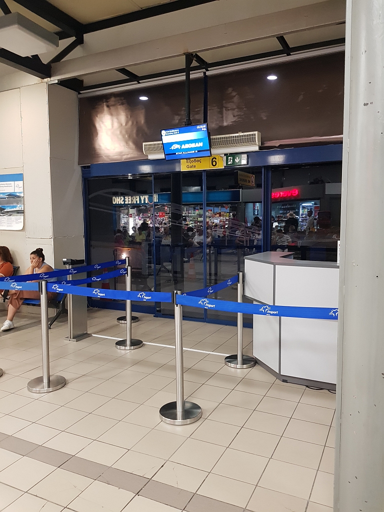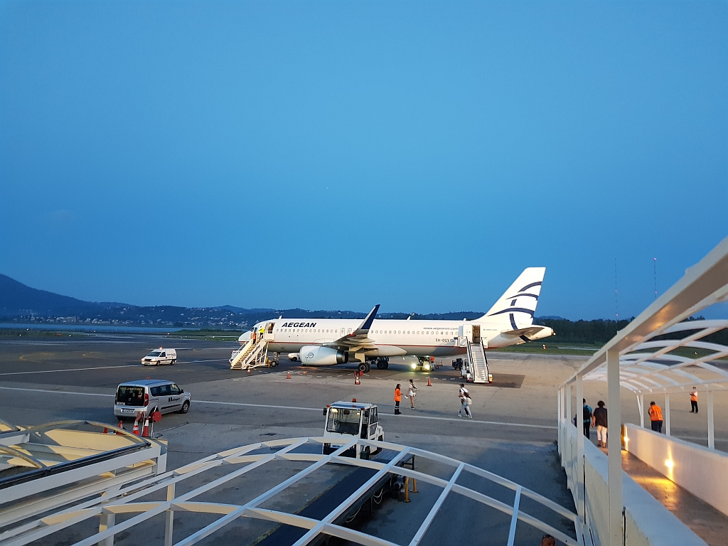 Am sehr, sehr, sehr frühen Morgen ging es dann zur Rezeption und zum Auschecken. Und zurück zum Flughafen, denn einer der ersten Flieger von Korfu nach Athen sollte unserer sein.