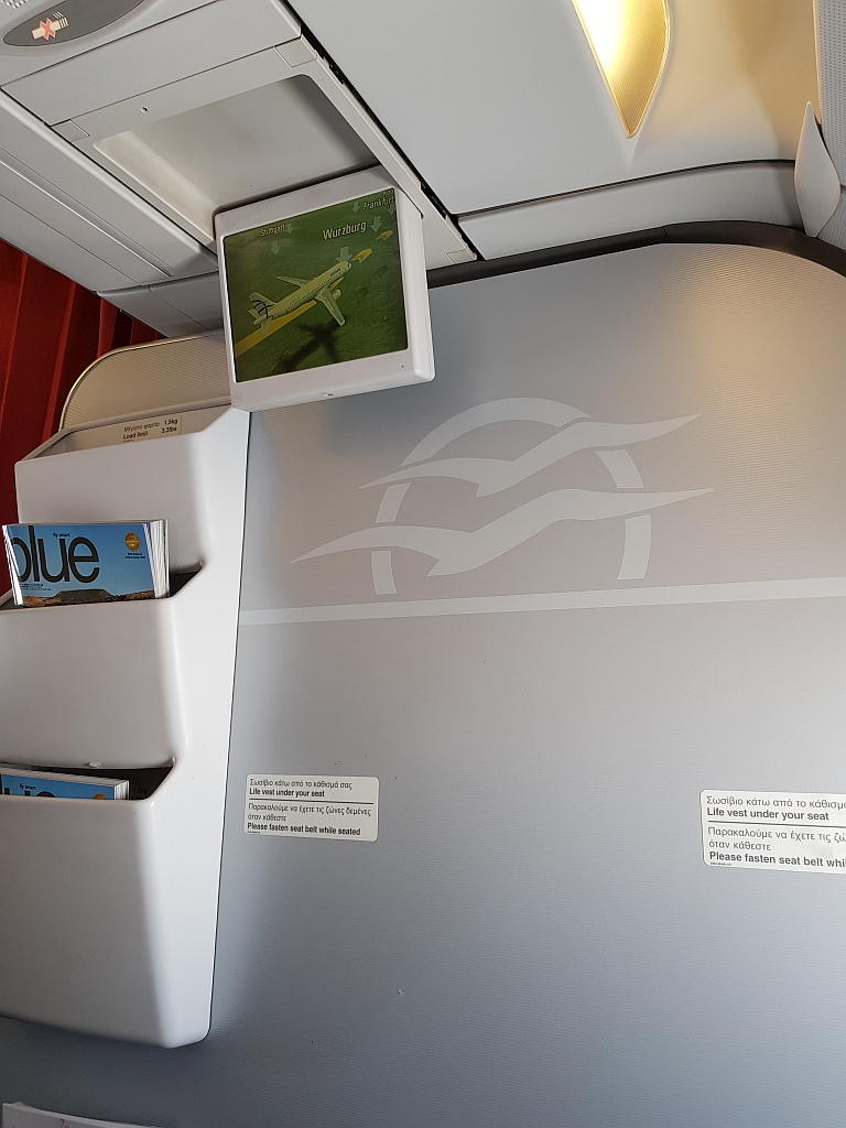 Für die 3 Stunden und 10 Minuten von Athen nach Düsseldorf hatten die dann aber wieder ein Upgrade per Voucher erlangt und saßen so in Reihe 1.