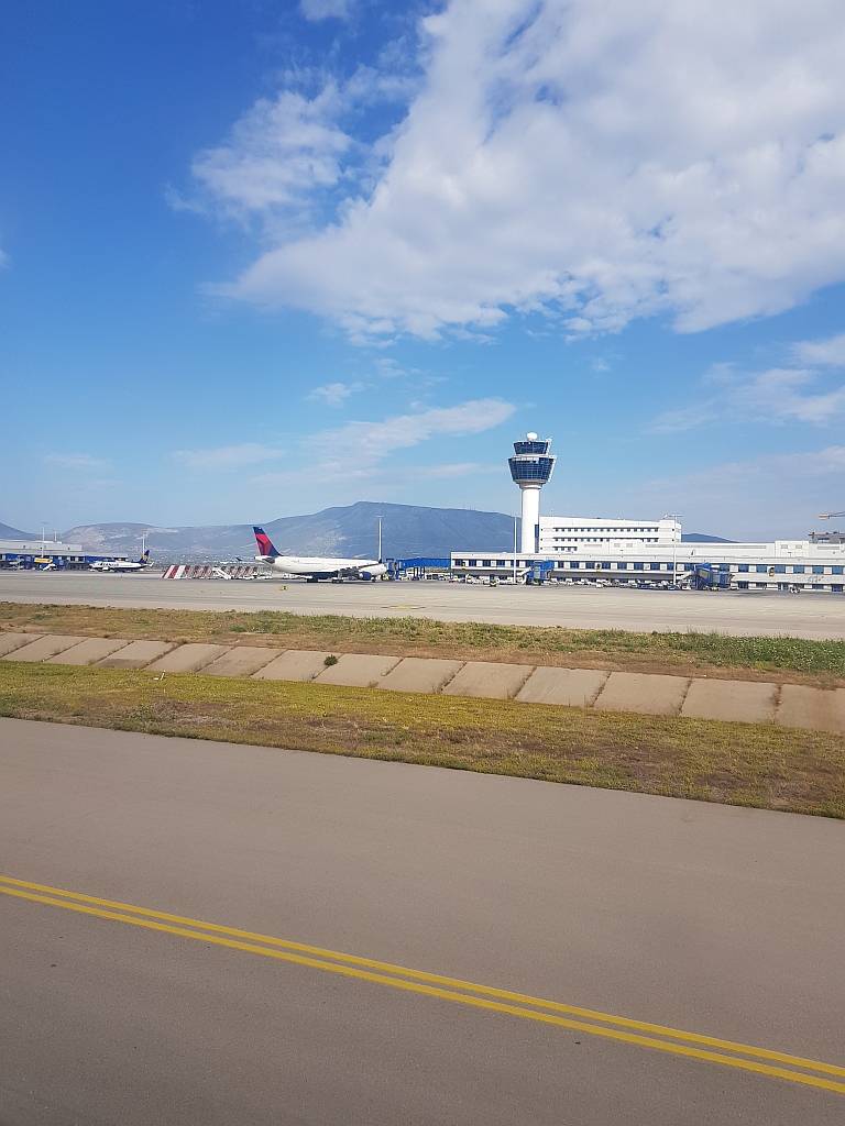 So konnte man aber auf der anderen Seite schöne Fotos vom Flieger machen, der uns den kurzen Hops nach Athen bringen soll.