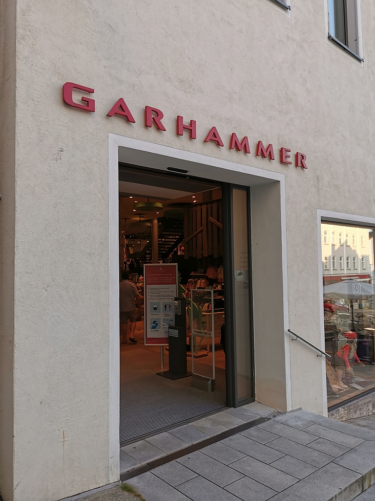 Am zentralen Marktplatz fanden wir dann auch das Modehaus „Garhammer“ (im Bild links).