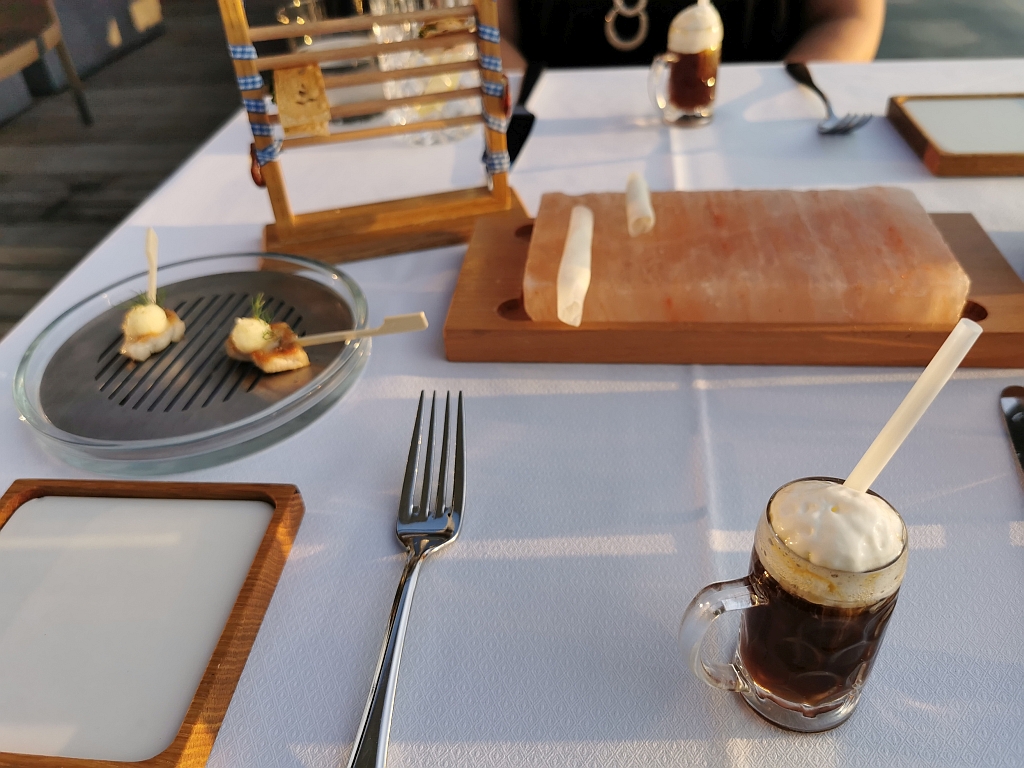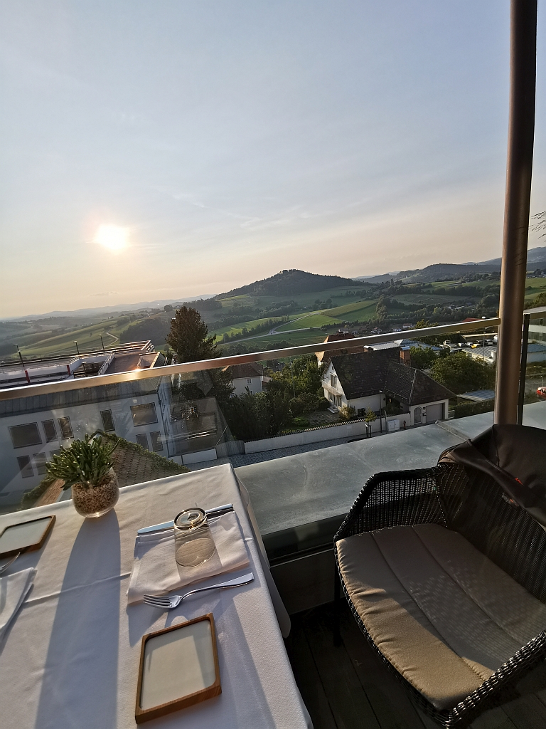Die Stimmung war jetzt schon sehr gut, was einerseits an dem sehr vielversprechenden Anfang des Menus lag und andererseits an der wunderschönen Aussicht von unserem Platz aus.