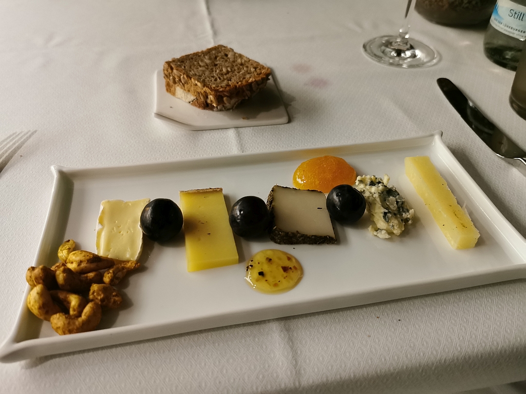 Danach trennten sich dann kulinarisch die Wege von Meike und Jens. Jens hatte dann nämlich eine Käseplatte mit einer schönen Bandbreite von Camenbert über Ziegenkäse, Blauschimmel mit Wein bis zu Manchego. Und dazu ein unglaublich passenden Trüffel-Honig.