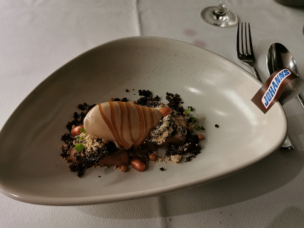Zum Abschluss ging es dann wieder gemeinsam weiter: „Don´t call it Snickers“: Edelbitter-Schokolade mit grösteten Erdnüssen, sehr intensives Malzbrot und Salzkaramell.