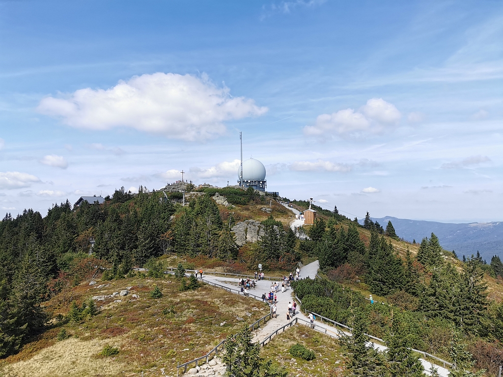 Der große Arber hat übrigens 4 Gipfel und auf einem gibt es noch ein Relikt aus dem kalten Krieg: Zwei sogenannte Radomen, also Antennenkuppeln, mit denen der Luftraum in der sehr nahmen CSSR überwacht wurde.