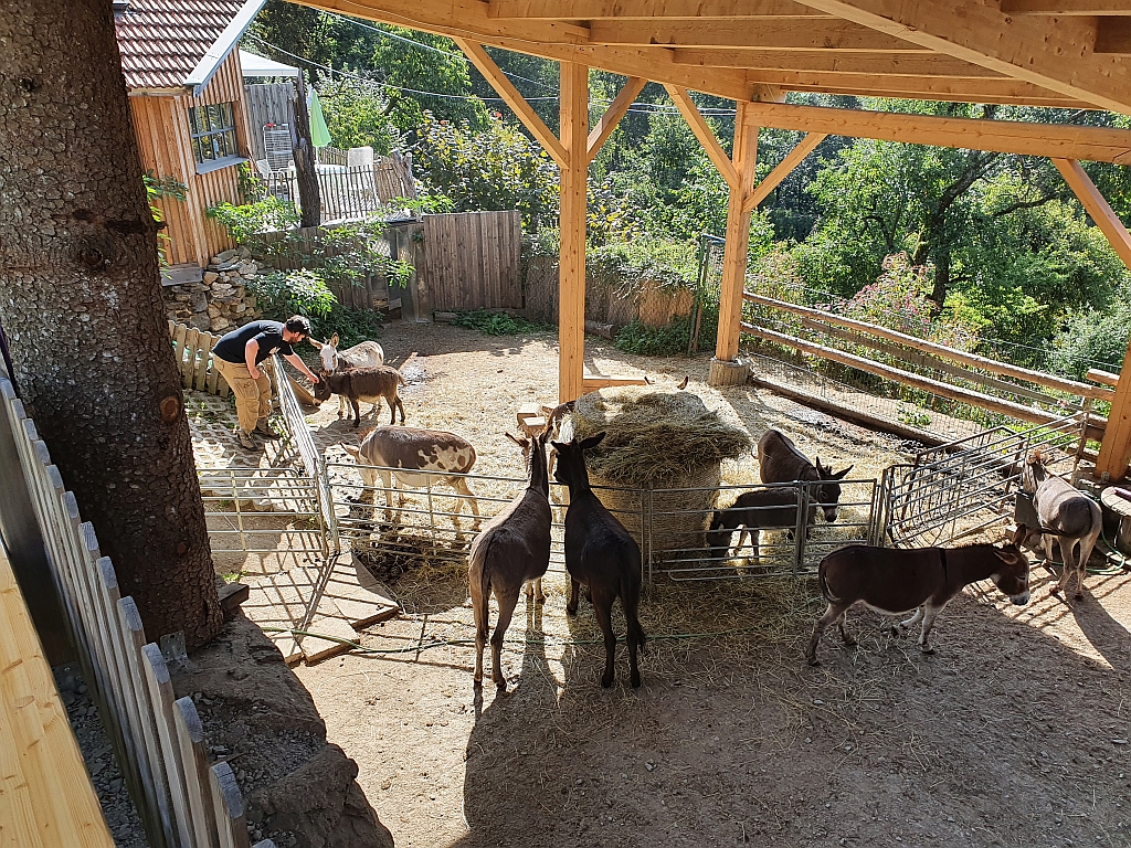 Nun der erste Tag der Eselwanderung. Diese wurde Jens von Meike vor einigen Jahren schon zum Geburtstag geschenkt, bislang hatten wir es aber nie auf die Reihe bekommen, dieses Geschenk auch einzulösen bzw. in einem Urlaub einzubauen. So gesehen hat die Corona-bedingte Absage diverser Reisen auch ihr Gutes.