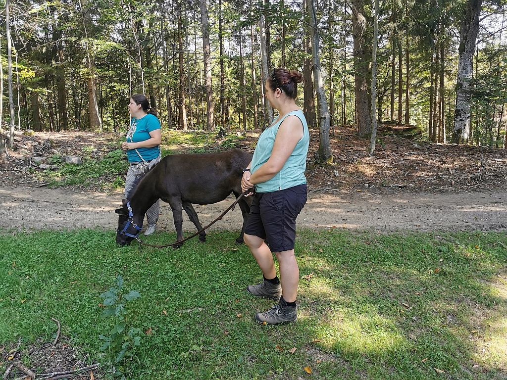Erste Ansage von Michaela: „Jeder bekommen den passenden Esel!“ Was bei Jens bedeutete, dass Cappuccino ein etwas älterer und leicht übergewichtiger Esel, sein Esel wurde. Cappuccino ist bekannt dafür, dass er relativ gutmütig aber eben auch etwas eigen ist. Und sehr sensibel auf Körpersprache und Lautstärken reagiert.