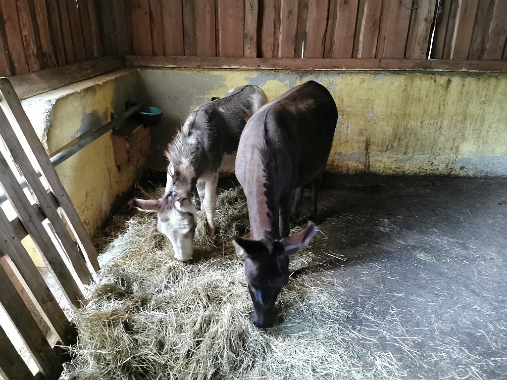 Der Versuch diese kleine Schätzchen mitzunehmen wurde aber von Michaela unterbunden, einer der Angestellten auf dem Hof und diejenige, die uns eine etwa 2 Stünde Einführung in das Thema „Wie gehe ich mit Eseln wandern?“ geben sollte. Neben uns war noch ein weiteres Paar da, die allerdings nur diese Einführung machen würden. War wohl ein Geschenk für die Frau, denn der Mann sah nicht so … begeistert aus.
