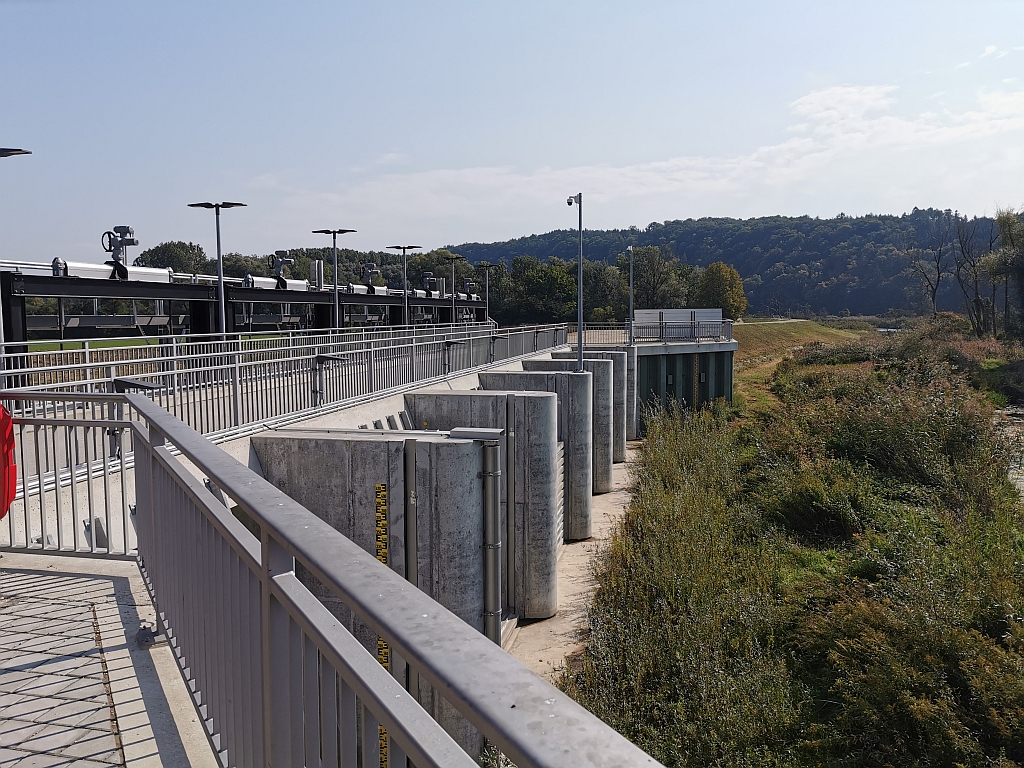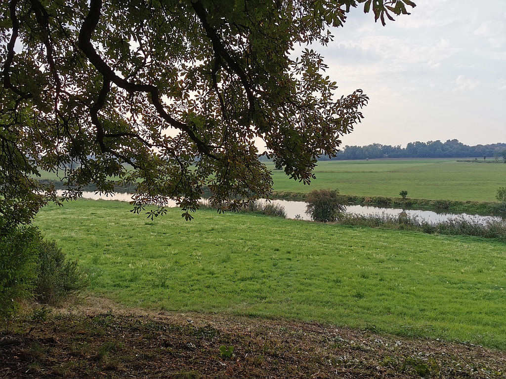 Bei der Durchfahrt in einem Ort hatten wir an einem Haus die Markierungen gesehen, wie hoch hier ein Hochwasser steigen kann bzw. gestiegen ist. 1989 wäre es über unsere Helme gegangen, was die vielen Polder-Werke erklärt, über die das Hochwasser auf freie Felder abgeleitet werden kann. Gerade im Hochwasserschutz wurde hier viel gebaut.