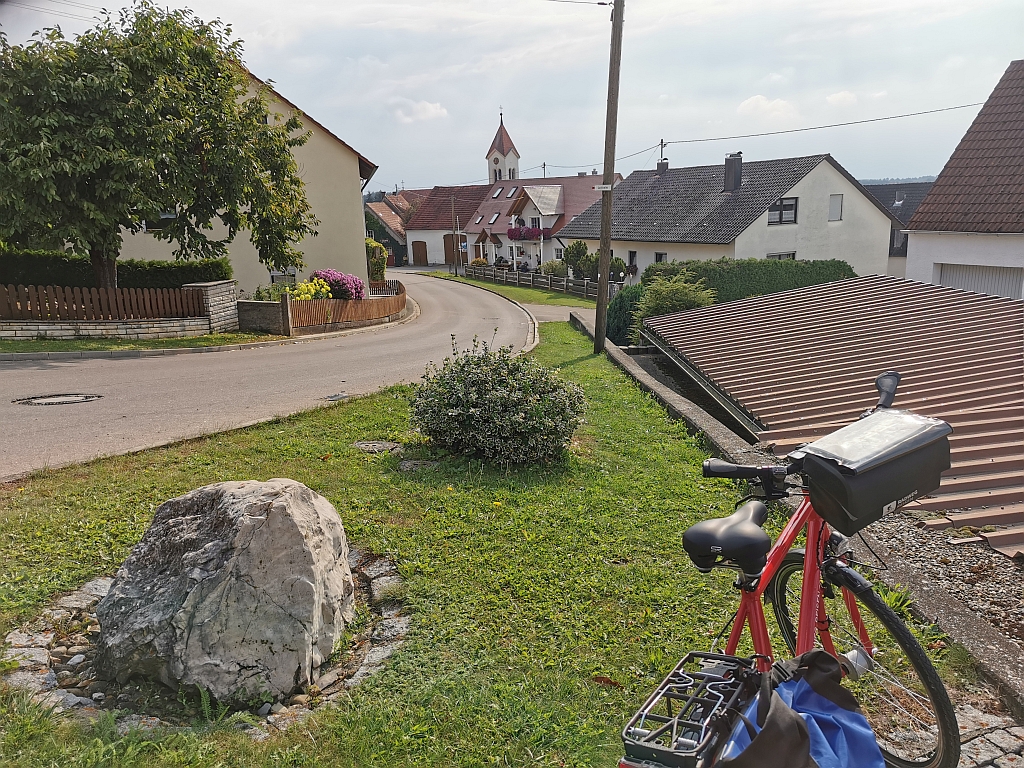 Auch wurde ja erwähnt, dass es hier Ausläufer der fränkischen Alp gibt. Bedeutet: Eben war die Route jetzt nicht so ganz. Und gerade am Anfang waren zwei, drei langgezogene Anstiege dabei, die uns untrainierte Radler ins Schwitzen brachten. Glücklicherweise gab es ab und zu eine Bank, wo man sich kurz ausruhen konnte.