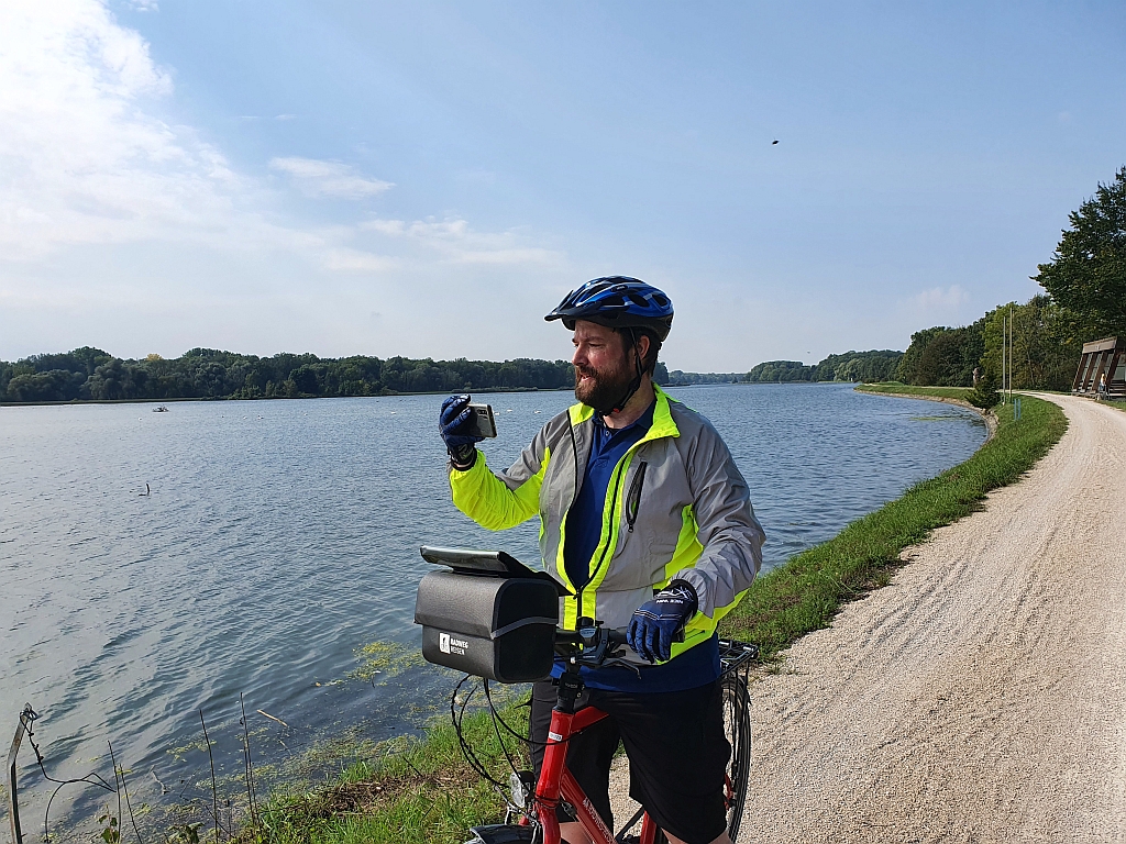 Der Radweg geht auf dieser Etappe dann nach einer Weile doch näher an die Donau ran. Vorzugsweise auf einen der Dämme, die die Donau bei Hochwasser davon abhalten soll, in die nahen Häuser reinzuschauen. Auf diesen Dämmen war der Weg auch nur eine Schotterpiste, was wir am Ende dieser Etappe verfluchen sollten. Unsere Räder hatten keine Dämmung und unsere Hintern leider auch nicht.