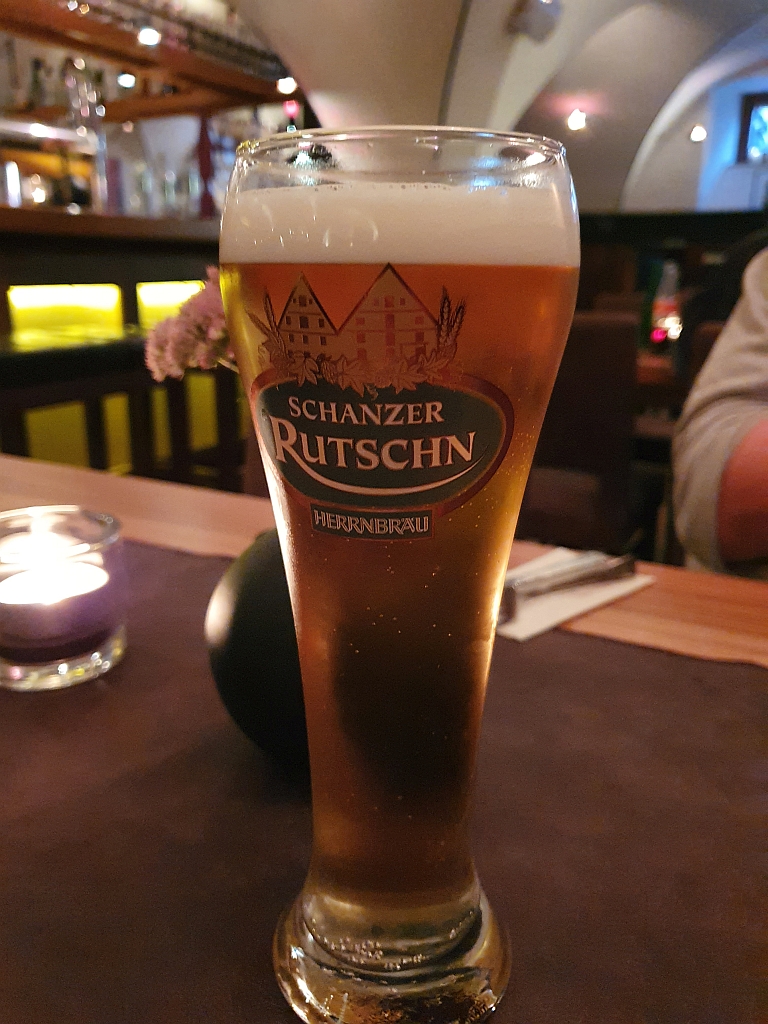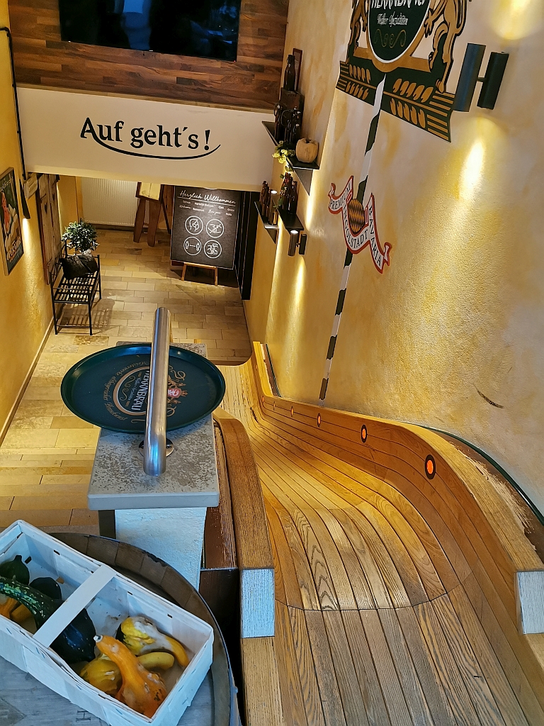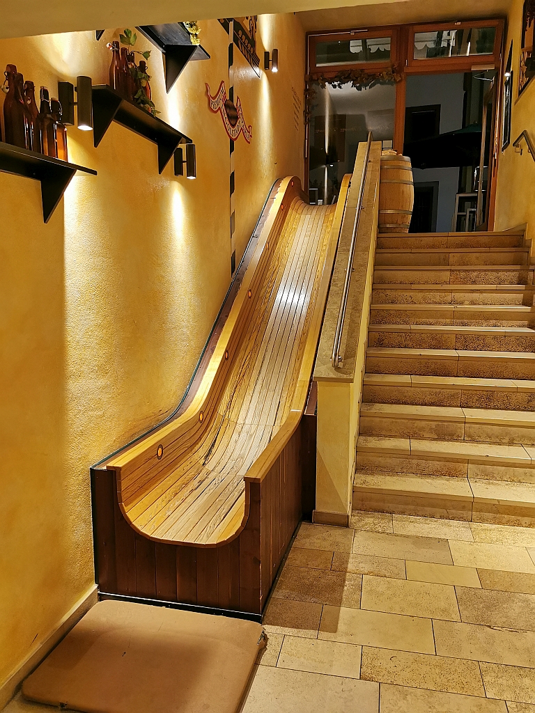 Für den heutigen Abend hatten wir im Voraus die Schanzer Ruschen ausgesucht. Einerseits wegen der guten und interessanten Speisekarte, andererseits wegen der Rutsche. Ja genau: Einer Rutsche!