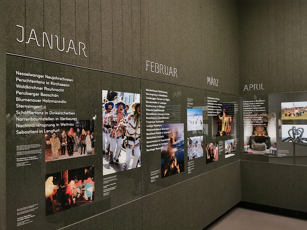 Ergänzt wird die Dauerausstelung durch 8 thematisch gegliederte sogenannte Kulturkabinette ergänzt, beispielsweise zu den bairischen Dialekten oder einer Übersicht zu Festen und Brauchtum in Bayern (die haben viele Feste!).