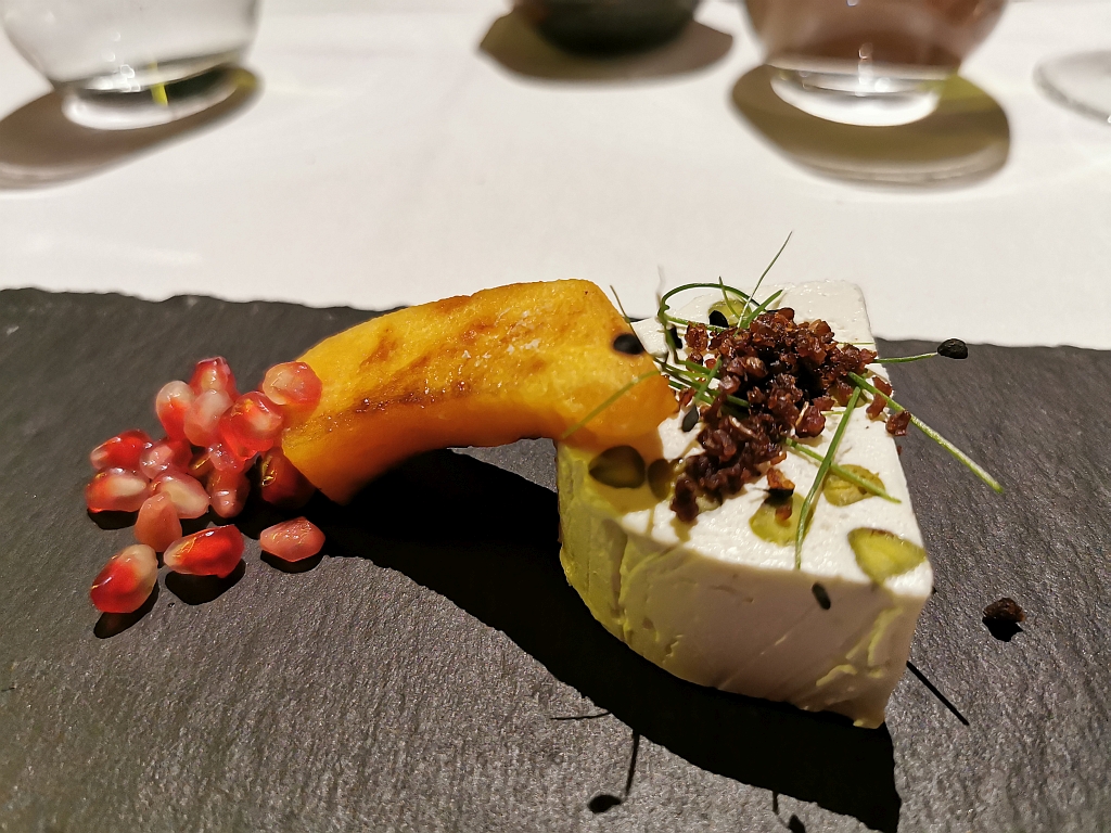 Danach kam leider ein für den Geschmack von Jens zu schwacher Gang :Ziegenkäse, Melone und Granatapfel.