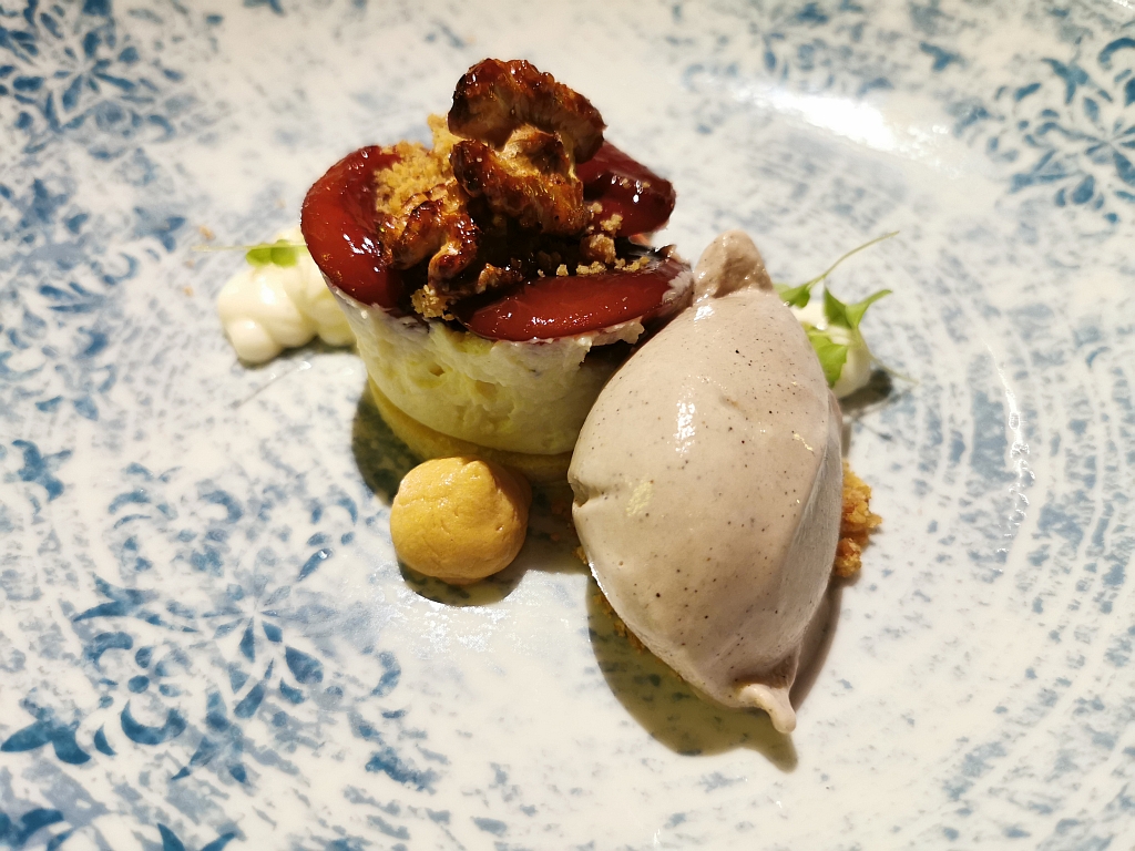 Anders beim zweiten Nachtisch, den Meike und Jens gemeinsam hatten: Zwetschge, Karamell und Pfeffereis.