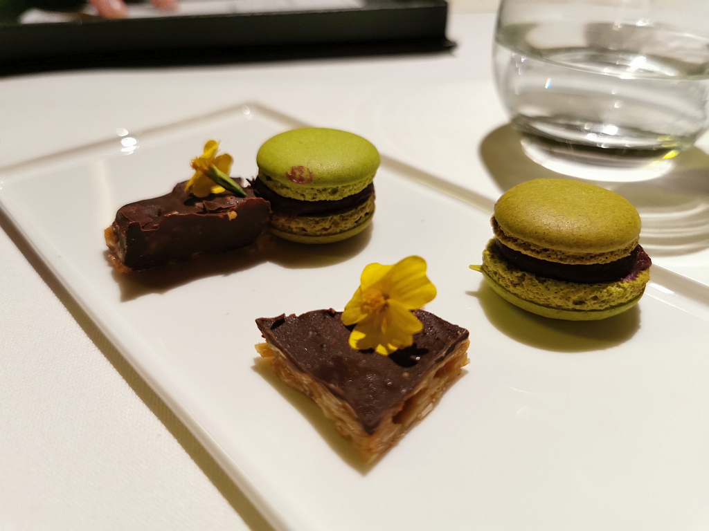 Zur Rechnung (und dem Digestif) dann noch ein paar kleine Schokolädchen und Macarons.