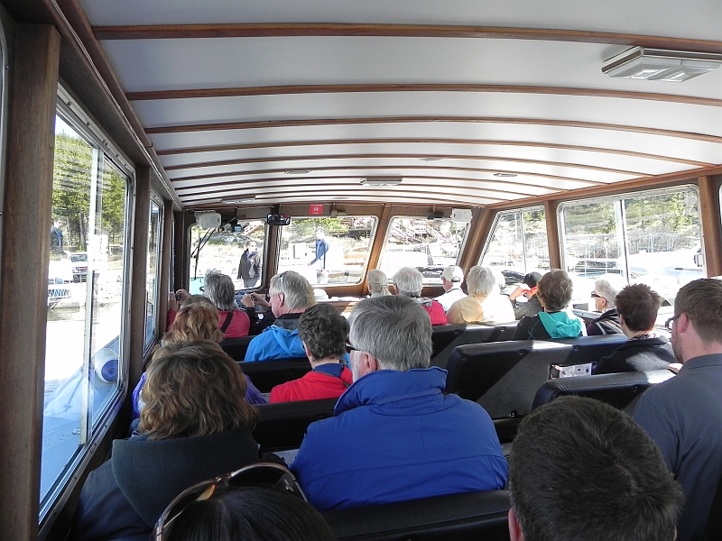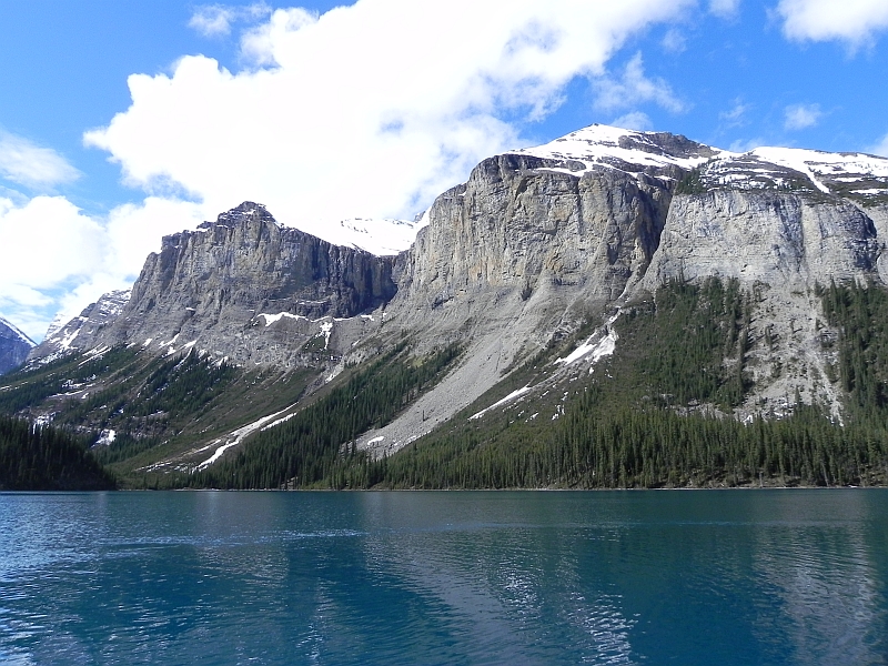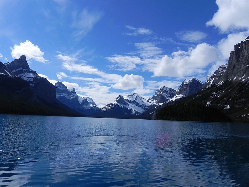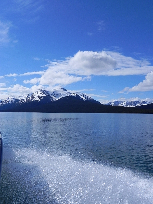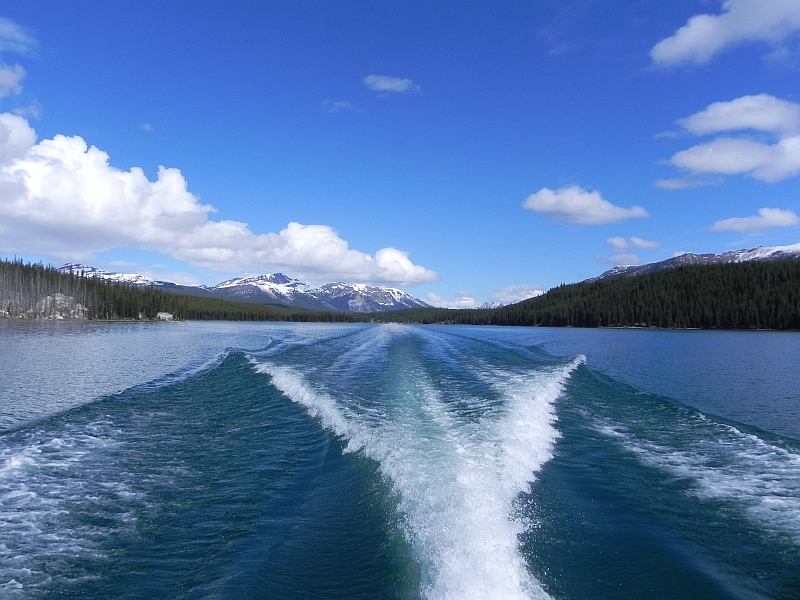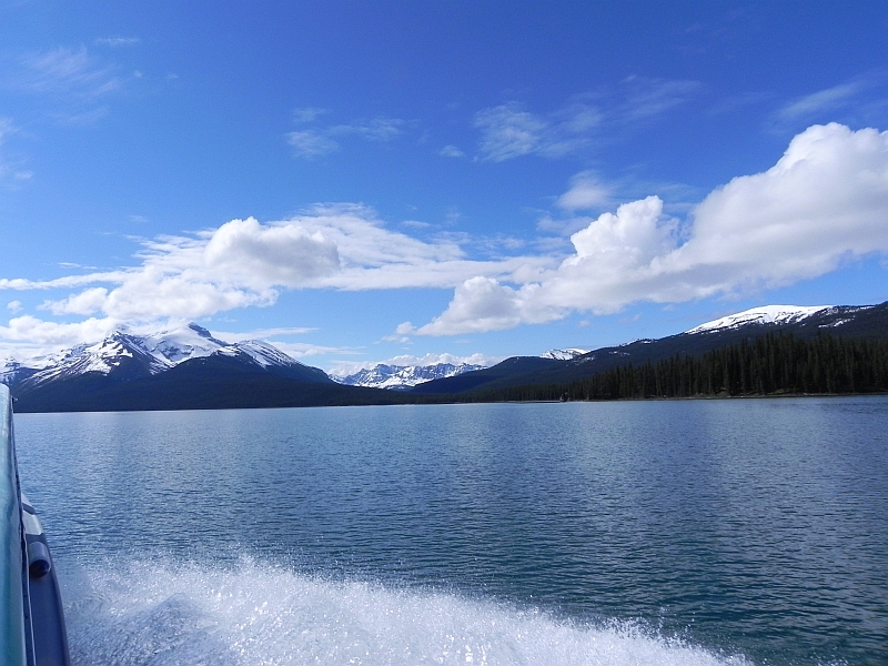 Nach dieser kleinen Runde (3 km) sind wir dann zum Bootsanleger gegangen, von wo aus Sightseeing-Trips über den Maligne Lake starten und weil so gutes Wetter war, haben wir uns zwei der letzten Plätze ergattert. Mit uns an Bord: 3 Japaner, 4 Amis, 2 Schweizer und eine Busladung voller australischer Rentner.