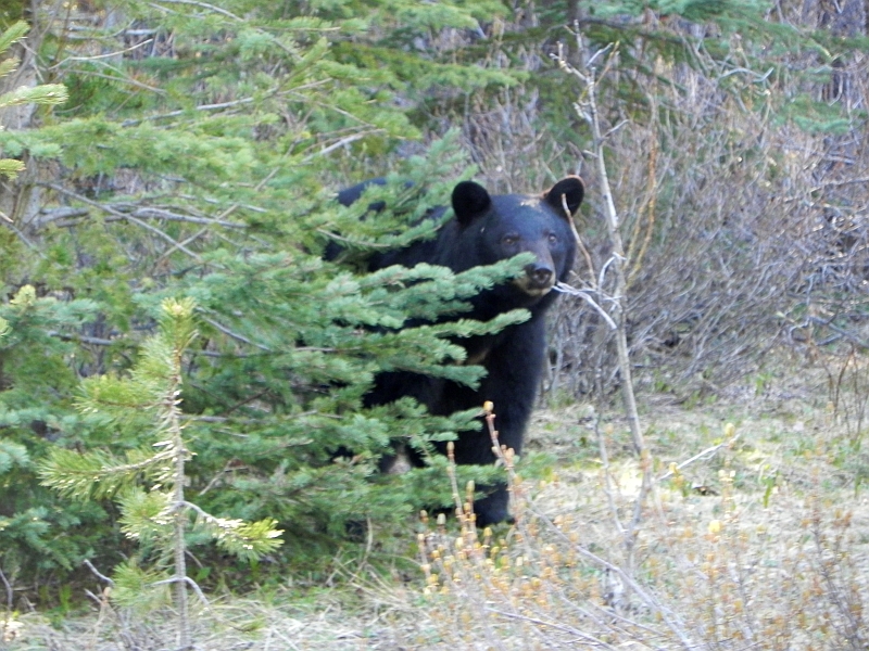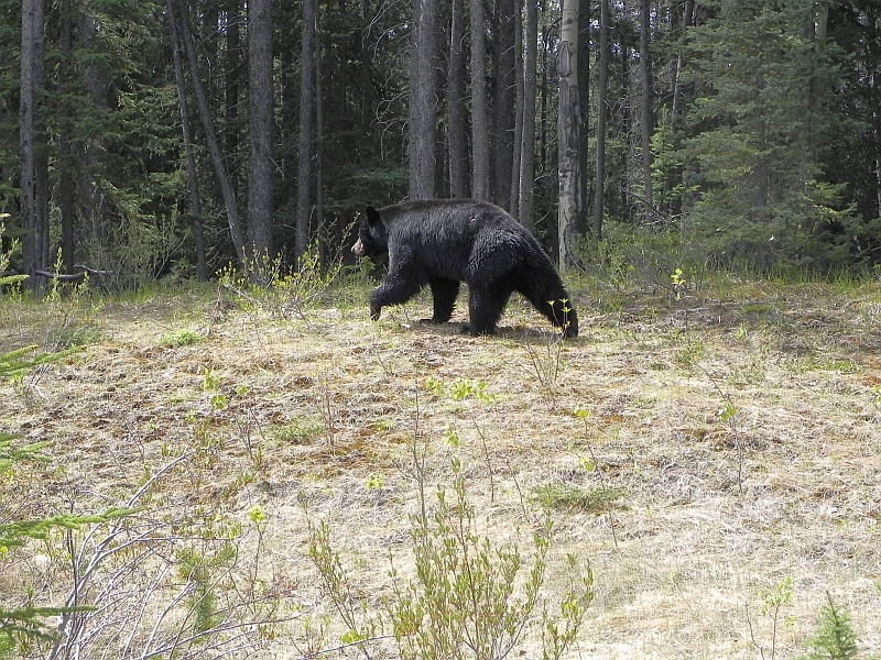 Ein recht junger Schwarzbär stand da und gucke uns an. Beeindruckend, so ein Tier mal aus der Nähe zu sehen. Die im Informations-Center empfohlenen 10 Buslängen Abstand haben wir zu unserer Schande nicht eingehalten. Ausgestiegen (wie das viele machen) – das sind wir aber dann auch nicht.