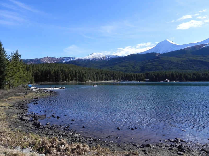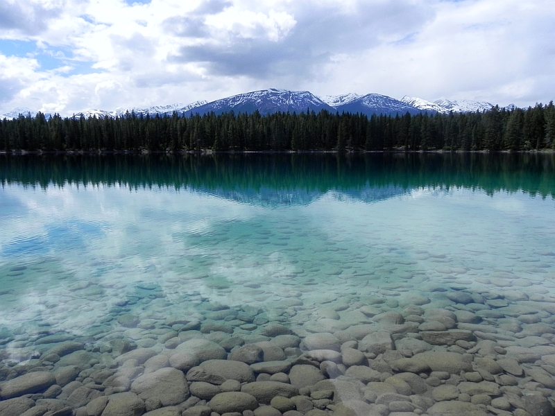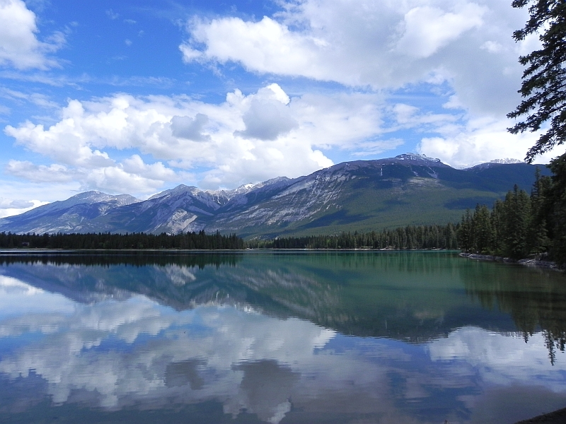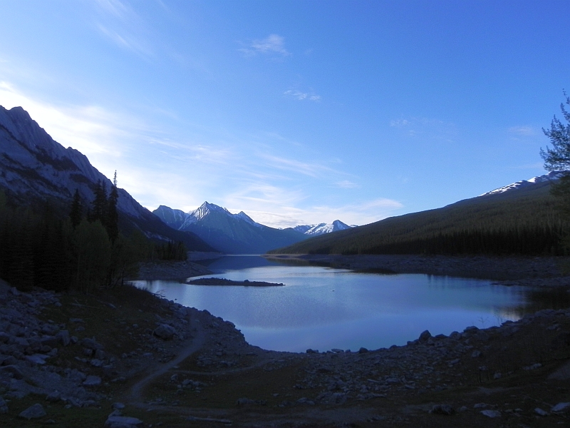 Auf dem Weg zum Maligne Lake kamen wir am Medicine Lake vorbei, der auch schon einmal einen guten Eindruck machte.