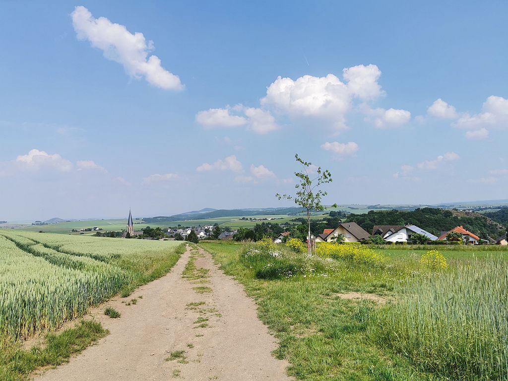 Auf den Feldwegen kamen wir dann sehr schnell voran und schon sah man ein kleines Neubaugebiet am Rande des Ortes Trimbs.