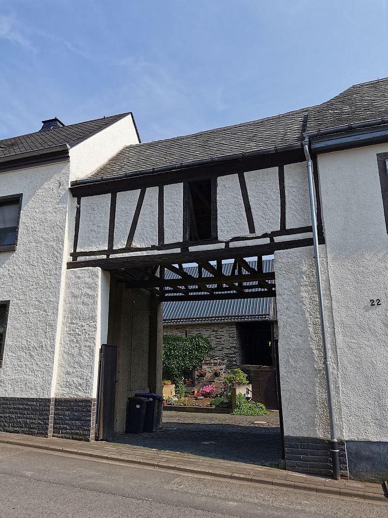 Ach so: An Schieferhängen kann man ja auch gut Wein pflanzen – dies wurde in Trimbs schon seit vielen Jahren auch getan. Der letzte Weinanbau endete allerdings 1963, was angesichts dieses Spruches über den Wein aus den Lagen hier vielleicht auch gut war: „Wer den Trimbser Wein trinkt, sollte vorher lachen, nach dem Genuss desselben kann er es nicht mehr!“