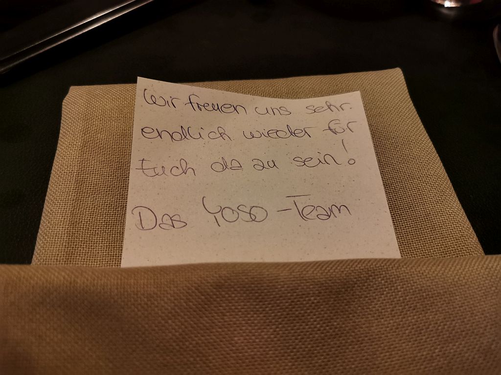 Für uns ein sehr cooles Ende eines vorzüglichen Essens. Bedeutet: Wir werden wiederkommen. Danke an das Yoso-Team!