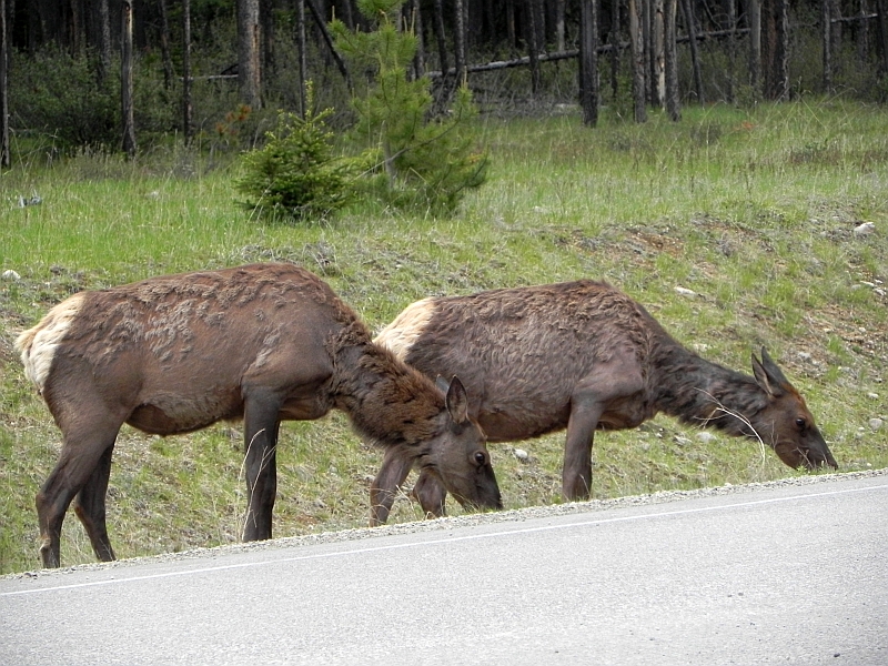 Also, rasch geduscht, Meike hat bezahlt, ich das Auto beladen, bei Tim Hortons einen Kaffee und einen Donut geholt und ab auf die Strasse nach Süden. Auf dem Weg haben wir schnell auch die ersten Tiere gesichtet: Caribous, auch als Rentiere bekannt.