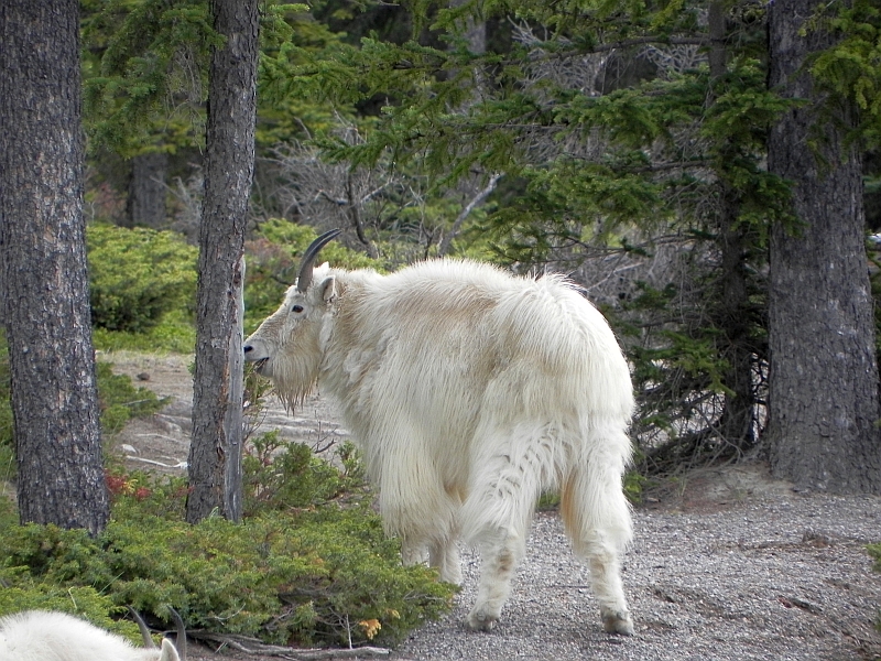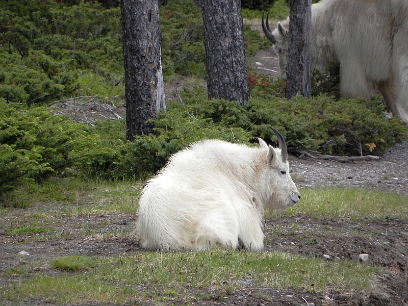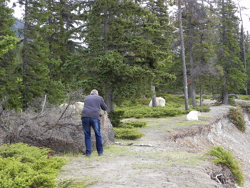 Gleich hinter den Fällen haben wir am Straßenrand, gleich hinter einem Parkplatz, eine Herde Bergziegen gesehen. Also herumgedreht und auf den Parkplatz gefahren und die Ziegen gesucht. Und gefunden: