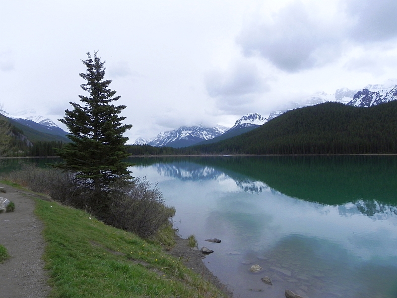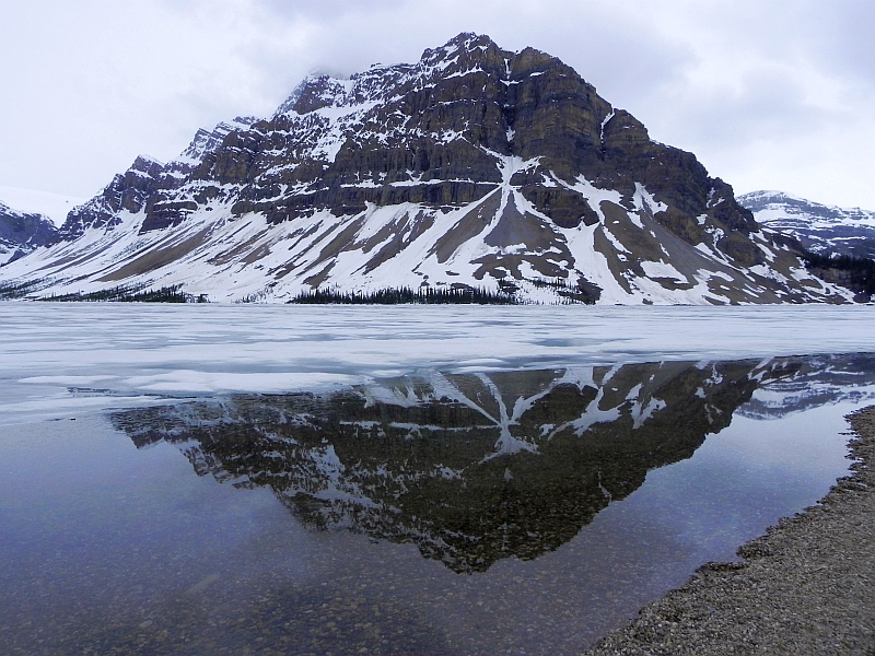 Als nächstes kamen dann noch zwei wunderschöne Seen mit Spiegelungen und mit Eis (!): Der Waterfowl Lake und der Bow Lake.