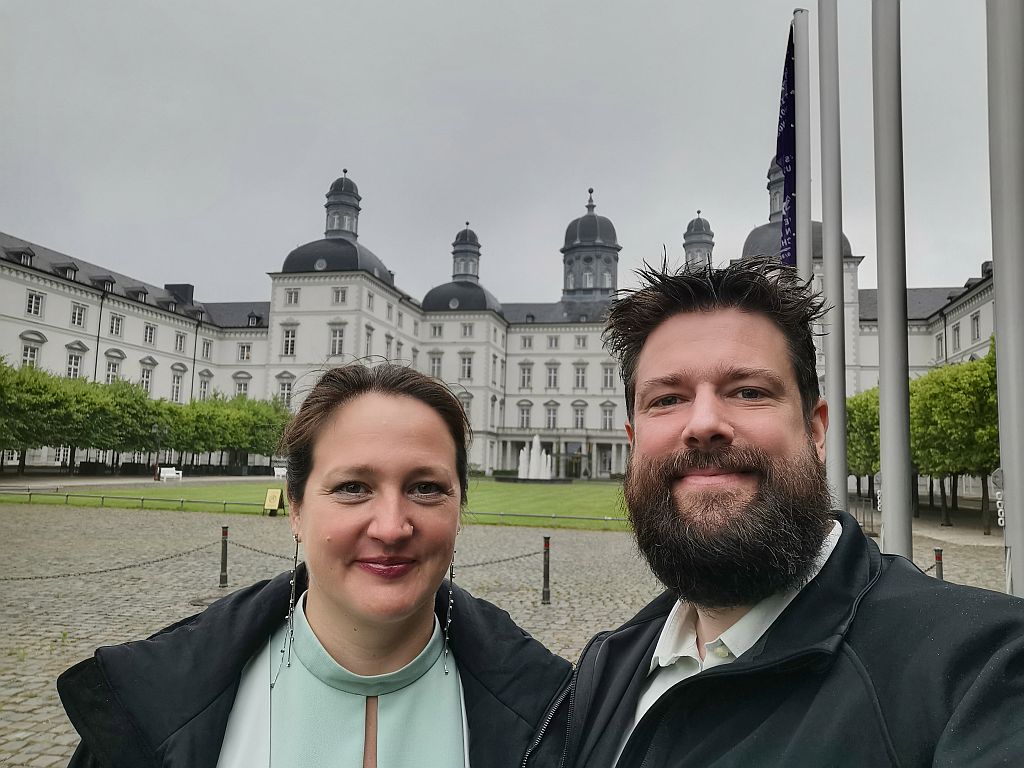 Durch unsere Ungeduld waren wir 15 Minuten zu früh und konnten so noch ein wenig auf dem Gelände des Schlosses herumspazieren und Meike konnte noch den einen oder anderen Geburtstagsgruß entgegennehmen.