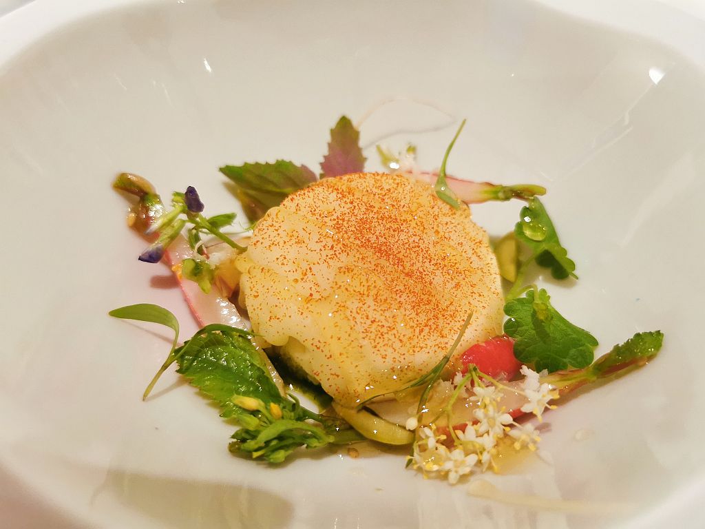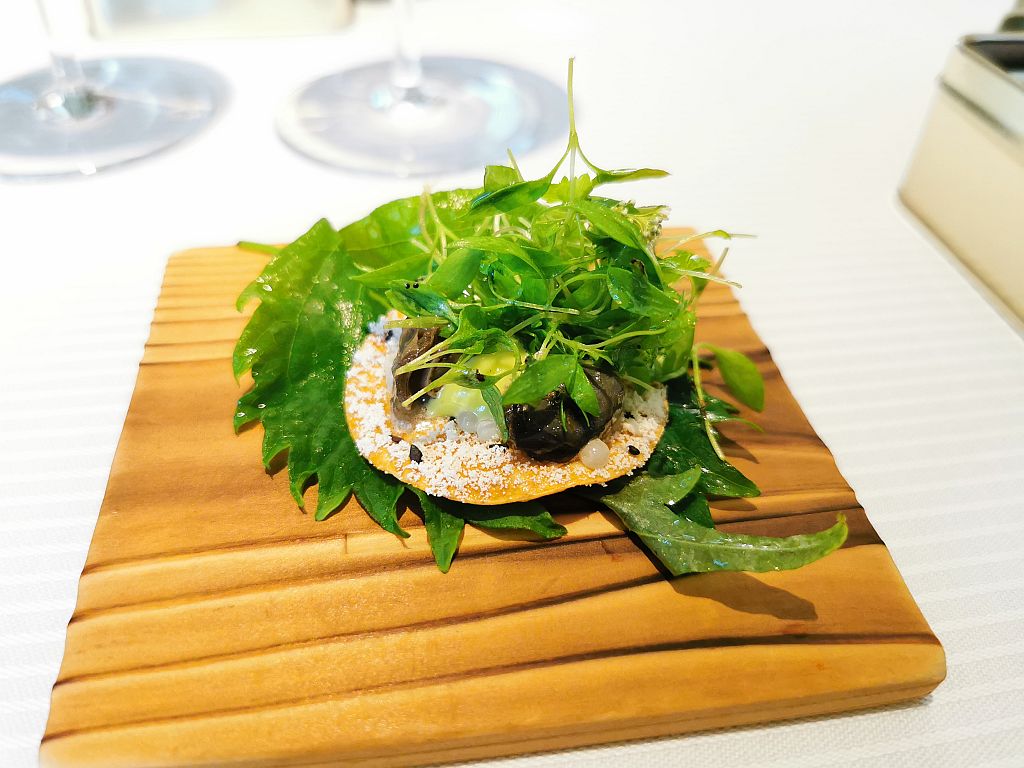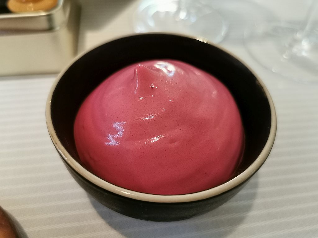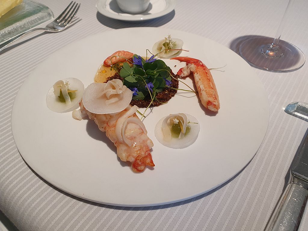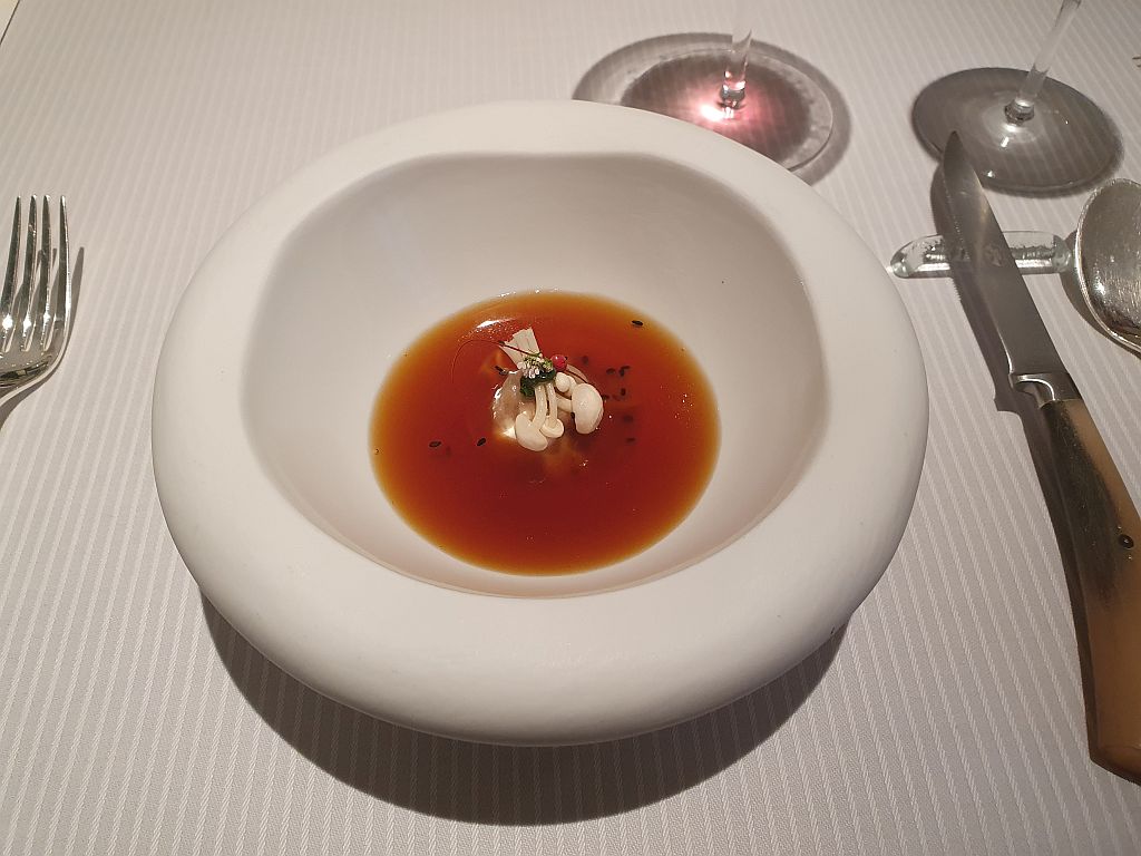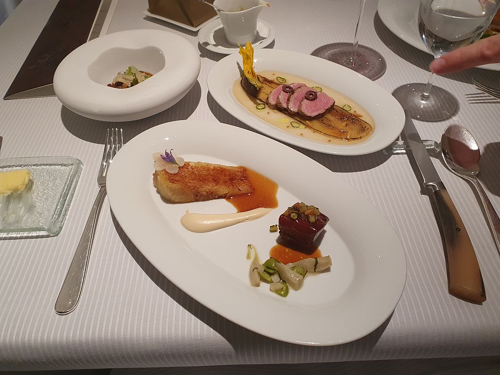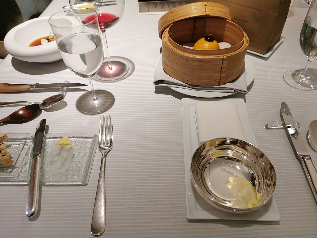 Ahhh … so eingestimmt ging es dann auch kurz danach weiter mit dem 8 Gang Degustationsmenu. Bei diesem kann man bei 3 Gängen zwischen 2 Optionen wählen. Und wir haben, und das fast schon nicht abgesprochen, jeweils die beiden Optionen gewählt. Wir würden also alles erleben können, was die Küche hier an diesem Abend bietet.
