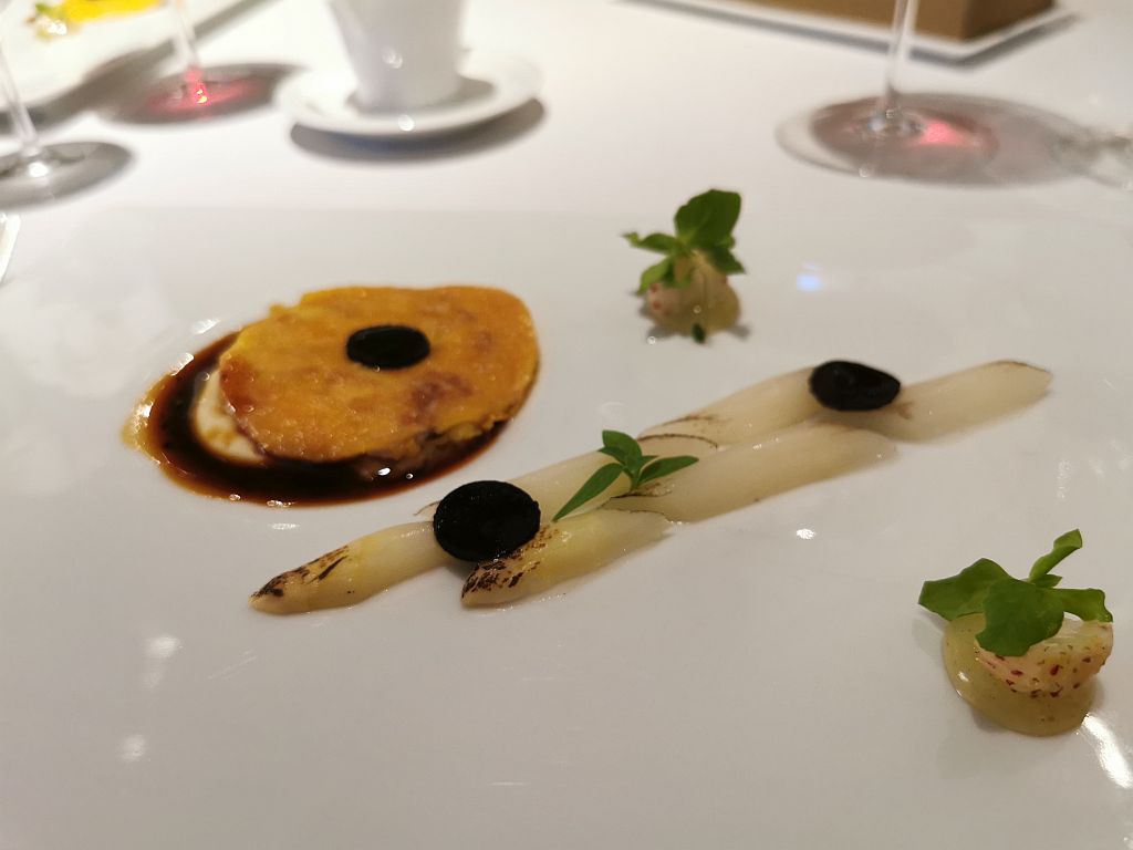 Hier also Kalbshirn Piccata, sehr fein und gut gebraten, mit Spargel, Trüffeljus und einer Creme aus Tonkabohnen und Sellerie.
