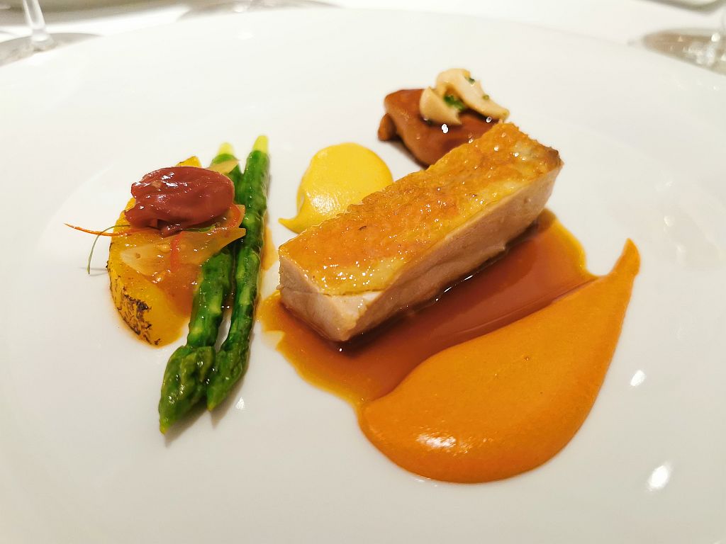 Wunderbare Aromen, die Curry Emulsion dabei überraschend scharf und sehr passend zum Perlhuhn.