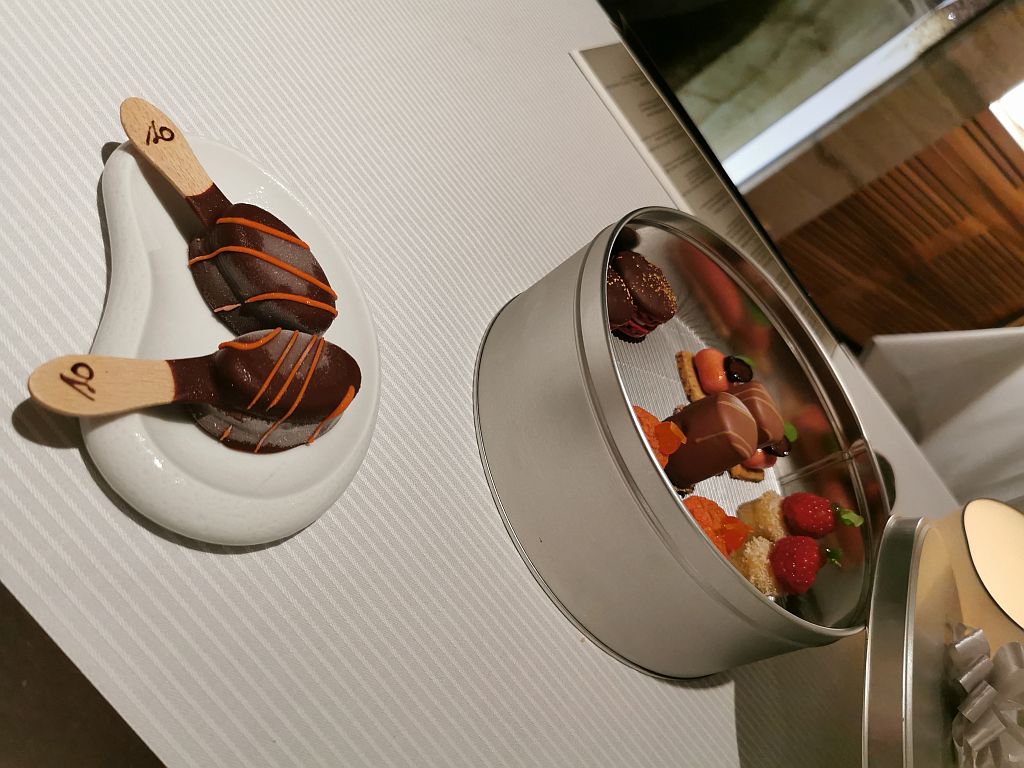 Zum Abschluss gab es dann noch verschiedene „Vendome Celebrations“, wobei wir gerade bei den Pralinen leider nicht mehr so genau wissen, was es alles war. Die Macron und der Schokokuss sind auf jeden Fall in Erinnerung geblieben.