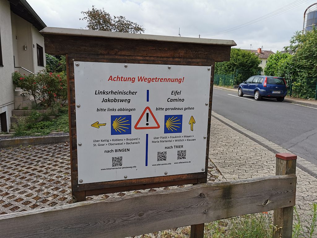 Wie schon gewohnt teilte sich der RheinBurgenWeg die Strecke mit dem Jakobsweg. Wobei es „den Jakobsweg“ ja nicht gibt, sondern der Begriff eher ein Streckennetz von Pilgerwegen bezeichnet, die aber alle in Santiago de Compostela enden.
