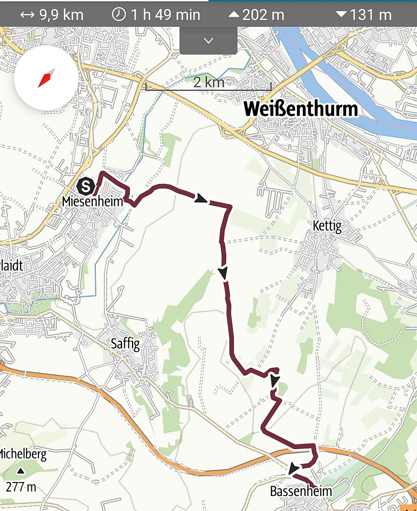 Ebenfalls in weiser Voraussicht hatten wir die Etappen etwas anders geschnitten und die eigentlich recht lange 4. Etappe von Andernach nach Bassenheim in 2 Teile geschnitten. So bleiben für den Rest der noch offenen 4. Etappe die 10 Kilometer von Andernach-Miesenheim nach Bassenheim übrig.