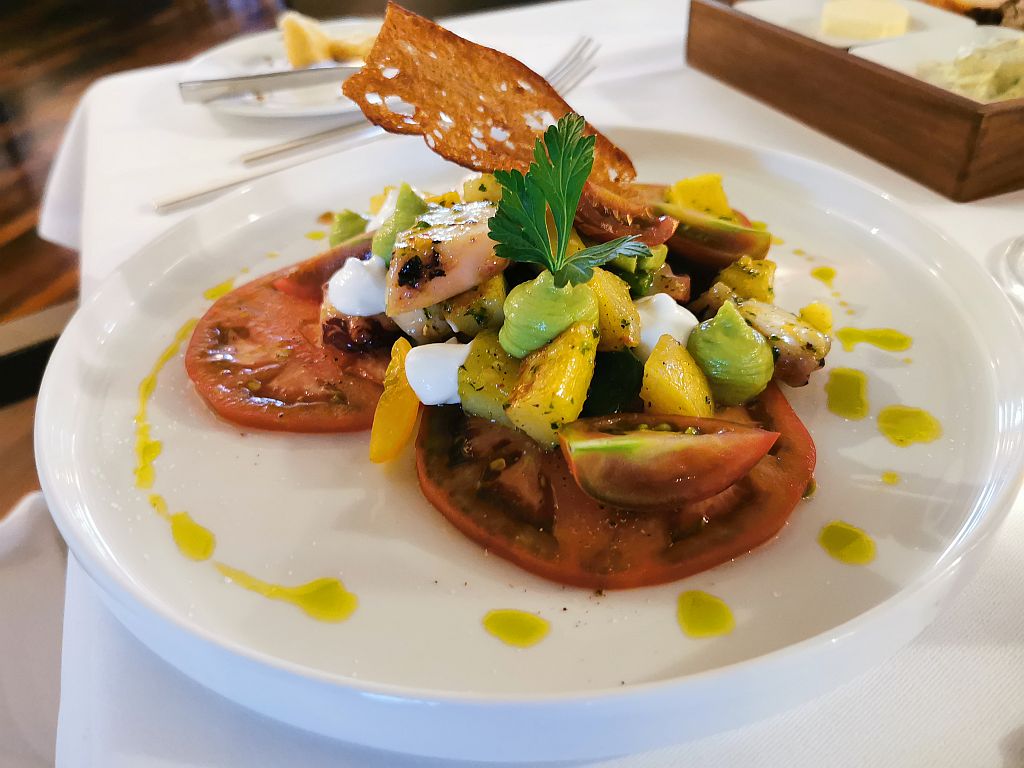 Meike dagegen fing mediterran an mit einem Oktopus mit Tomate, Bohnen, Kartoffeln und einem pikanten Aioli.