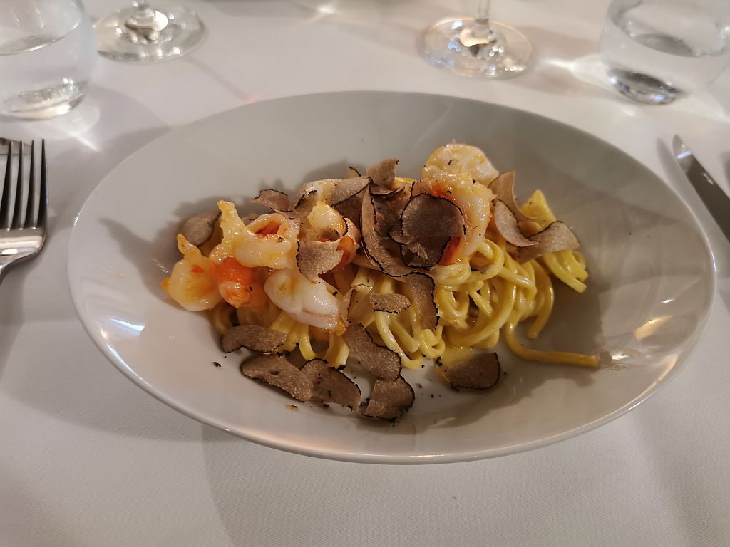 Das war irgendwie nicht so unser Fall. Nicht alles, was mit Trüffeln garniert wird, ist sofort ein gutes Essen – die Nudeln waren etwas zu durch.